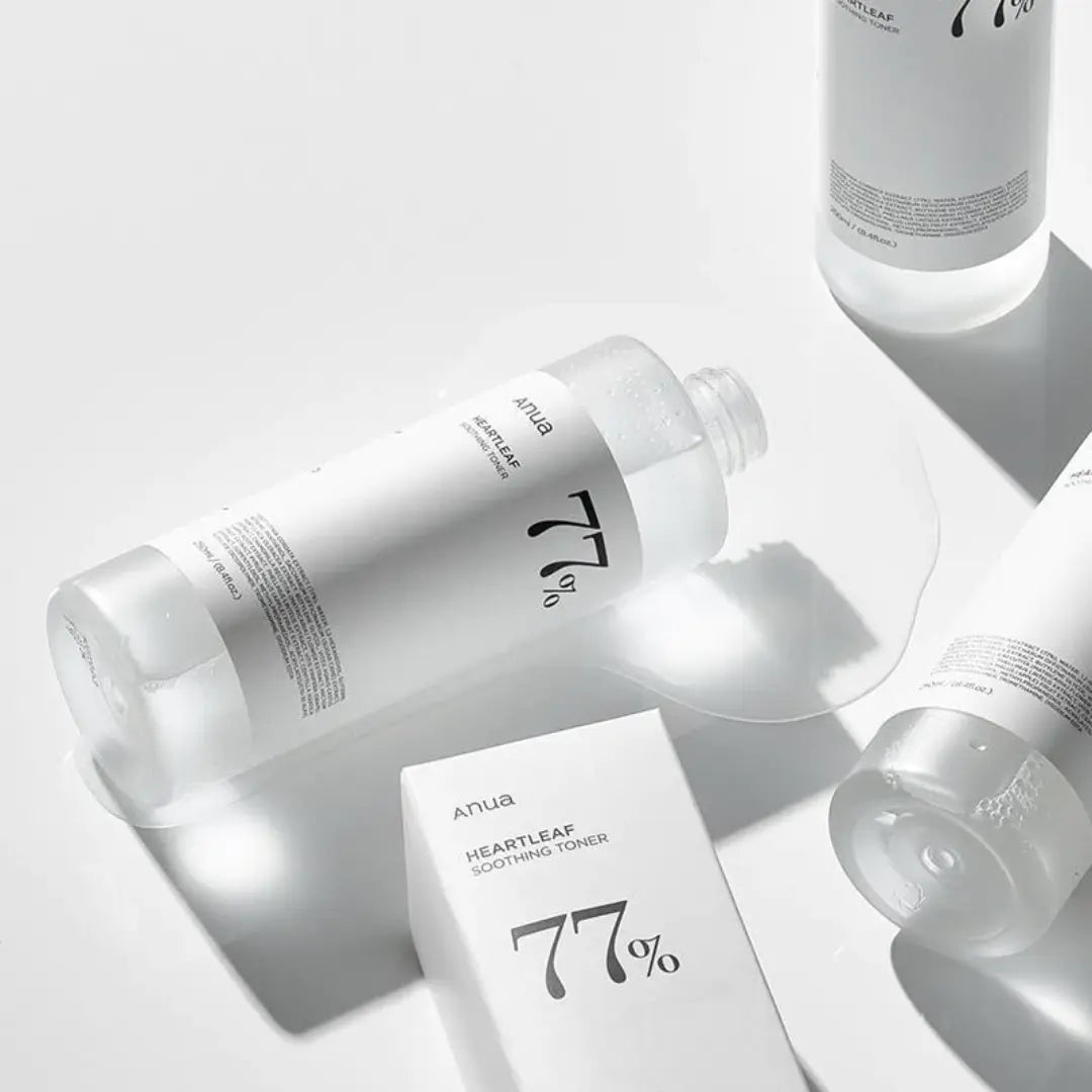 Anua Heartleaf 77% Soothing Toner is een gezichtstoner met krachtige en verzachtende eigenschappen. Het bevat Heartleaf-extract, dat de hydratatie verbetert, irritatie verzacht en roodheid vermindert. Betaïne, samen met panthenol, zal de regeneratie van de opperhuid en de lipidenbarrière van de huid versnellen. De formule bevat nog twee extracten namelijk suikerrietextract, dat verkleuringen helpt verwijderen en fijne lijntjes vermindert, en posteleinextract, dat een helende, verzachtende en kalmerende werking heeft.